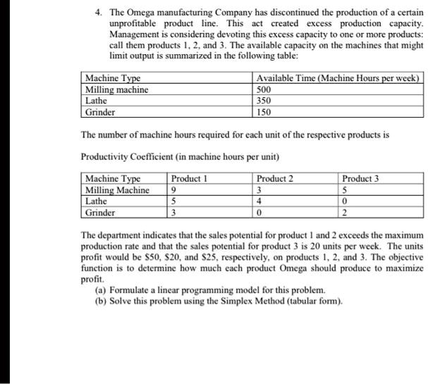 Solved 4 The Omega Manufacturing Company Has Discontinued Chegg Com