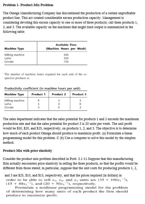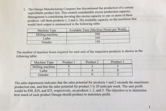 Solved Problem 1 25 Points The Omega Manufacturing Company Has Discontinued The Produc Tion Of A Certain Unprofitable Product Line This Act Created Considerable Excess Production Capacity Management Is Considering Devoting This Excess