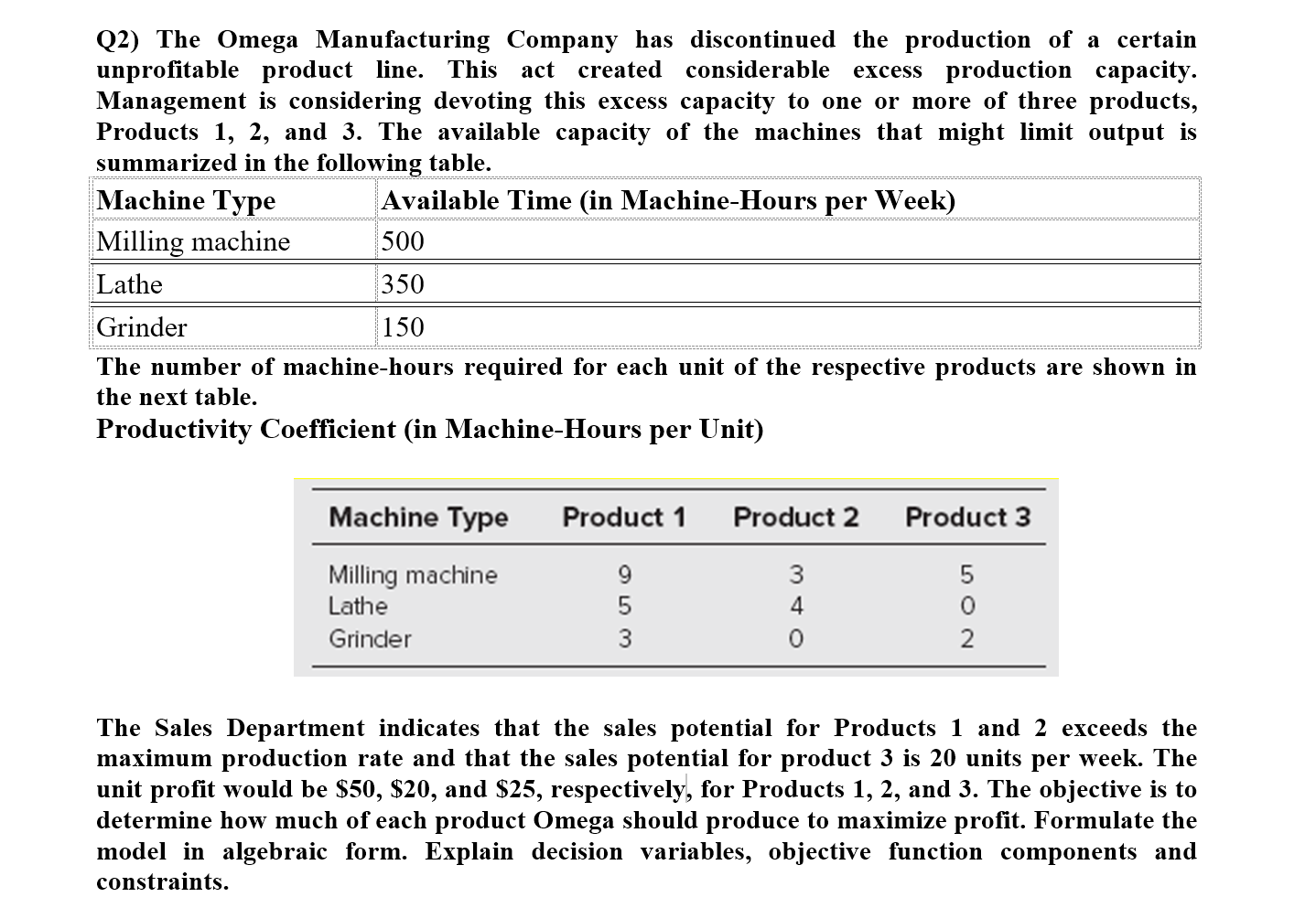 Solved Q2 The Omega Manufacturing Company Has Discontinued Chegg Com