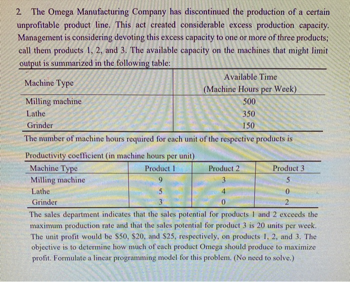 Solved 2 The Omega Manufacturing Company Has Discontinued Chegg Com